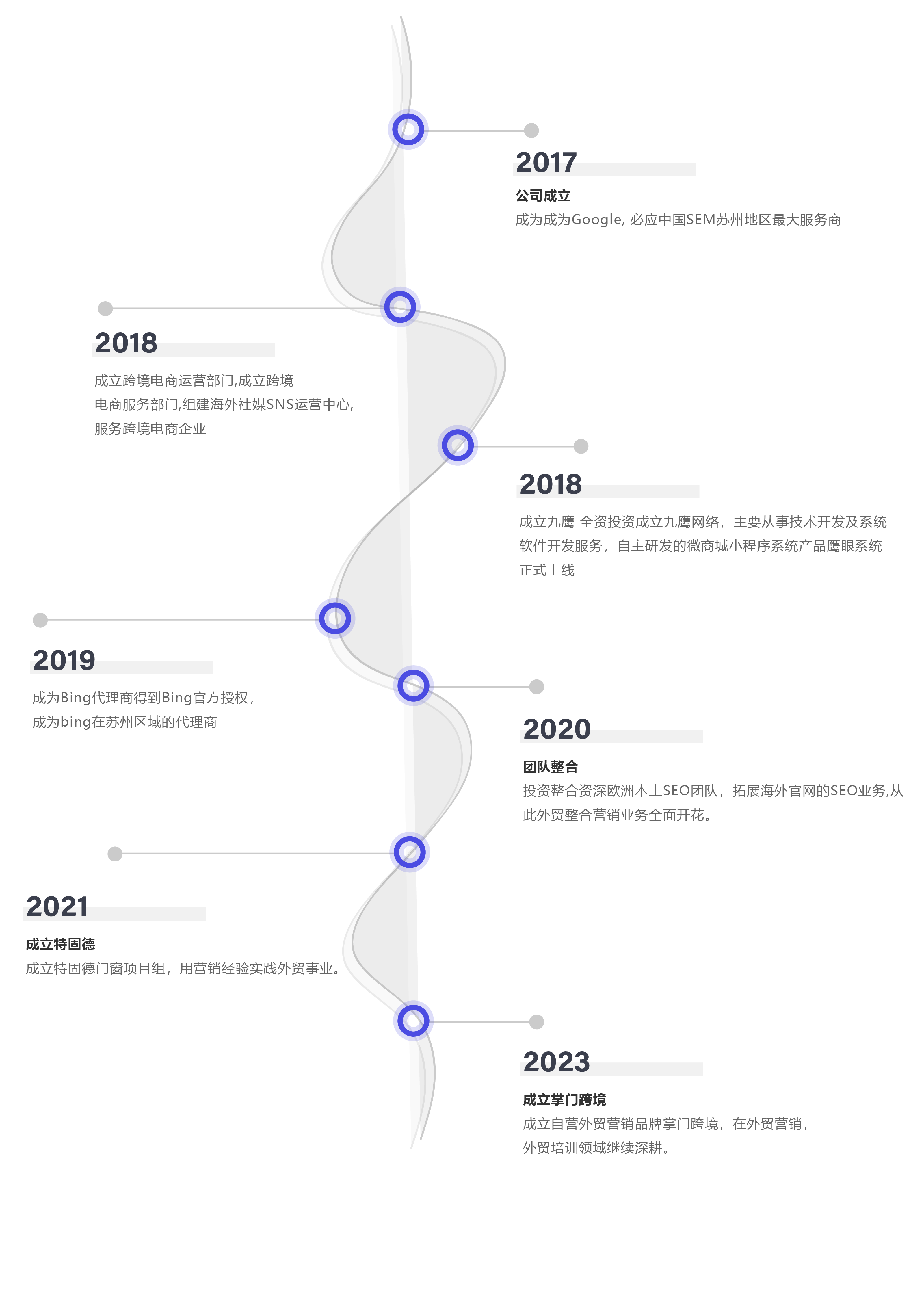 掌门的服务团队经验丰富,至今有17年的互联网营销经验。拥有谷歌中国最早的服务运营团队,谷歌及必应苏州授权合作伙伴。业务涵盖海外数字营销广告服务,自营出口业务2大主要版块。